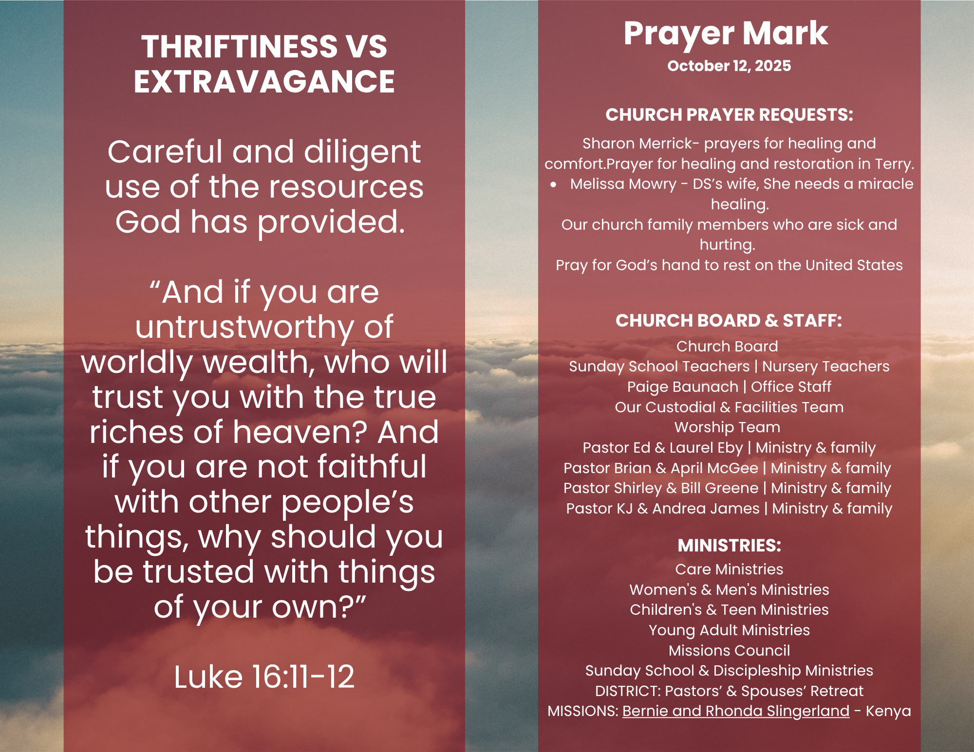 If you would like a copy of the Bulletin please reach out to the church office or click HERE.